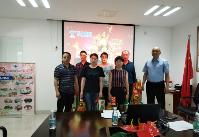 2018年4月28日,“五一”勞動節(jié)前夕,在華寶集團黨工團的指導下,華寶集團舉行了慶“五一”困難職工慰問大會,對各廠參會的職工發(fā)放慰問金和慰問品。集團工會主席師體偉和副主席陳云偉分別發(fā)表講話,對困難職工表示親切的關懷和慰問,職工代表發(fā)言表達對公司的感謝。