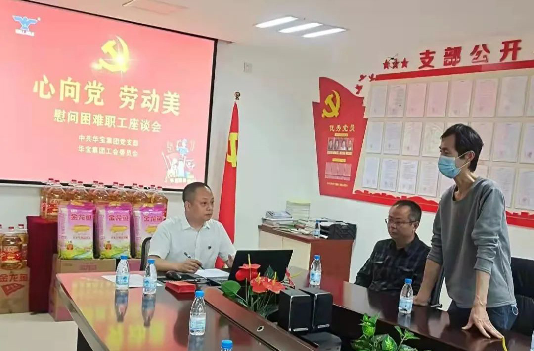 2022年4月29日,在中國(guó)第72個(gè)勞動(dòng)節(jié)即將到來(lái)之際,華寶集團(tuán)黨支部和工會(huì)隆重舉行了慰問(wèn)困難職工和表彰“抗疫先鋒”活動(dòng),以關(guān)懷和致敬一線員工,激發(fā)勞動(dòng)最光榮熱情,集團(tuán)黨支部書記、工會(huì)主席師體偉主持了活動(dòng)。