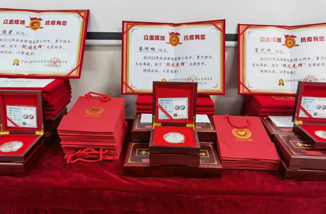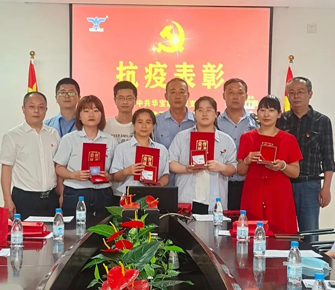 表彰抗疫先鋒 同樣,在三月份出現(xiàn)的新冠疫情里,在公司董事會(huì)以及黨群工作部的帶領(lǐng)下,公司上下并肩作戰(zhàn),齊心守護(hù),廣大黨員干部及志愿者積極響應(yīng)政府號(hào)召,迅速反應(yīng),第一時(shí)間奔赴“抗疫”前線,以實(shí)際行動(dòng)詮釋了“奉獻(xiàn)、友愛(ài)、互助、進(jìn)步”的志愿精神,取得了抗擊本輪疫情的階段性勝利。今天,特隆重舉行抗擊新冠肺炎疫情表彰會(huì),向作出貢獻(xiàn)的黨員和職工授予“抗疫先鋒”榮譽(yù)稱號(hào),弘揚(yáng)偉大抗疫志愿精神,致以崇高敬意,表達(dá)衷心感謝。 面對(duì)此次疫情,華寶集團(tuán)的黨員表現(xiàn)出了高度的責(zé)任感和使命感,挺身而出,成為群眾的“主心骨”和先鋒軍,用實(shí)際行動(dòng)當(dāng)好標(biāo)桿,發(fā)揮先鋒作用。他們不忘黨員的初心本色,在黨旗引領(lǐng)下,團(tuán)結(jié)群眾,眾志成城,勇敢地投入到疫情防控前線,堅(jiān)決捍衛(wèi)人民群眾的生命財(cái)產(chǎn)安全,用實(shí)際行動(dòng)彰顯黨員的責(zé)任和擔(dān)當(dāng)。此次受到表彰的一共有12名黨員干部(含2名涉外黨員),分別為師體偉、余紅慶、李樹海、虞先禮、王碧花、文俊榮、周春燕、蔡文明、陳國(guó)華、吳秋媛、張?zhí)⑼豕痖牛A寶集團(tuán)黨支部書記、工會(huì)主席師體偉向他們頒發(fā)了“抗疫先鋒”榮譽(yù)證書和特別定制的紀(jì)念章。