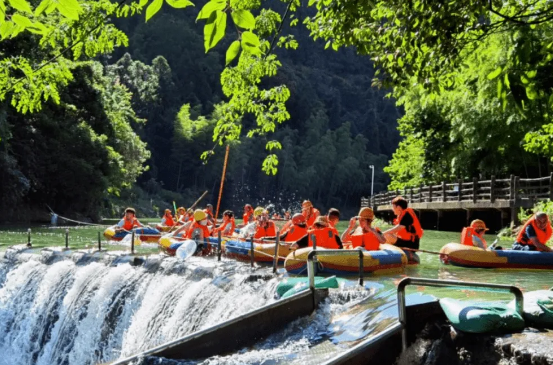 #03 云龍谷漂流 酒店用餐結束后,一行人前往云龍谷漂流。云龍谷景區距離德化縣城17公里。該漂流河段系晉江水源頭之一,起點為國寶云龍谷景區的大門口,終點為梨花島,全程3.8公里,落差近50米,急流險灘30多處,漂流時間約2小時。