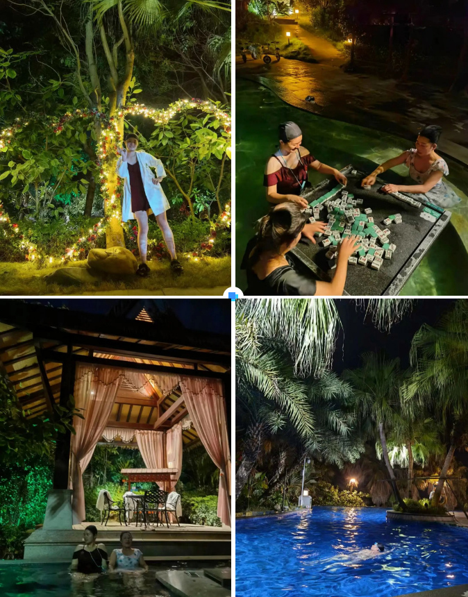 #04 溫泉度假村泡溫泉 晚上,各位職工用完晚餐短暫休息后,自行前往酒店的溫泉池泡溫泉。泡溫泉可以使肌肉關節松弛,達到放松身心、療養身體、消除疲勞的目的。