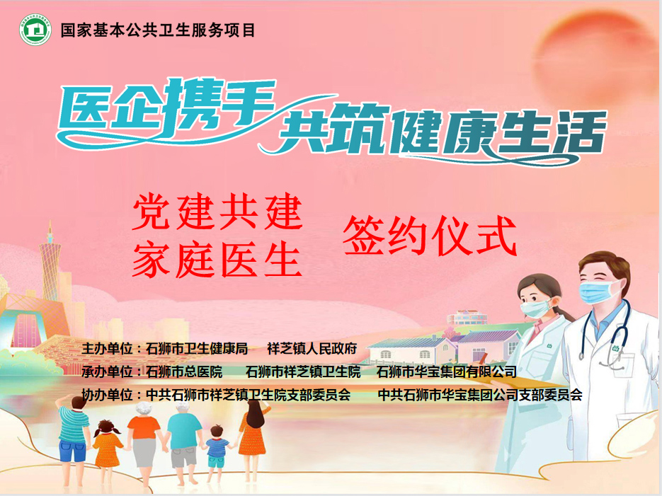 重要會議解讀 2023年5月12日,石獅市華寶集團有限公司與祥芝鎮衛生院舉行了《石獅市祥芝鎮衛生院家庭醫生簽約協議》和《黨建共建協議書》簽約儀式。華寶集團副總經理吳世金和祥芝鎮衛生院副院長王明云出席儀式并簽約。華寶集團黨支部書記、工會主席師體偉和祥芝鎮衛生副院長王明云分別發表講話。