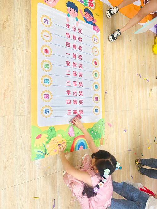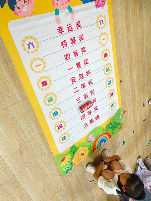 第三項(xiàng)游戲是滾滾樂(lè),滾動(dòng)的可樂(lè)滾到哪里,就獲得對(duì)應(yīng)的獎(jiǎng)品。小朋友通過(guò)這三個(gè)小游戲每個(gè)人的手提袋都收獲滿滿。